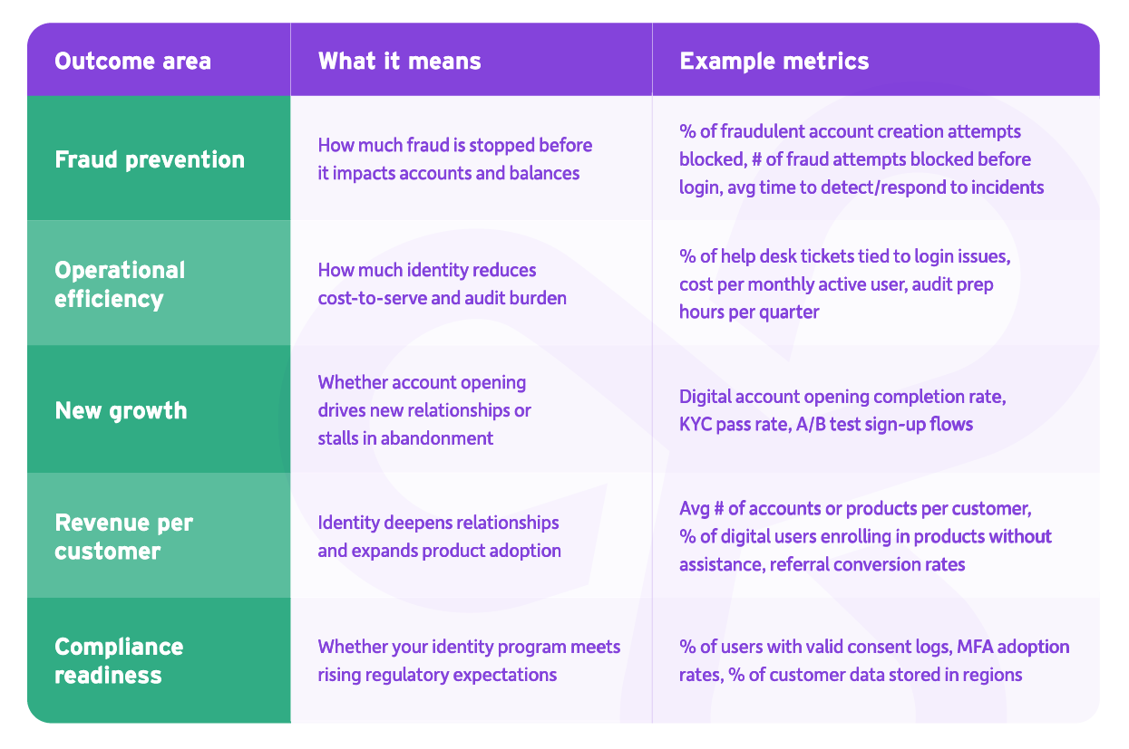 Identity is about more than logging in. It’s about protecting revenue, cutting costs, accelerating digital growth, and staying compliant. The real question is whether you’re measuring it in a way that your CFO, CRO, and regulators will value.