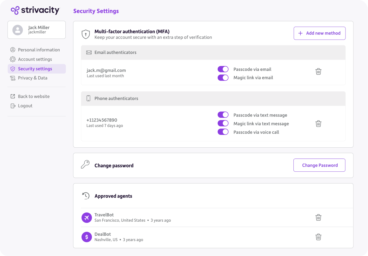 Strivacity for AI Agents extends identity to include autonomous systems so you can safely delegate authority, monitor agent behavior, and maintain complete visibility across your ecosystem.